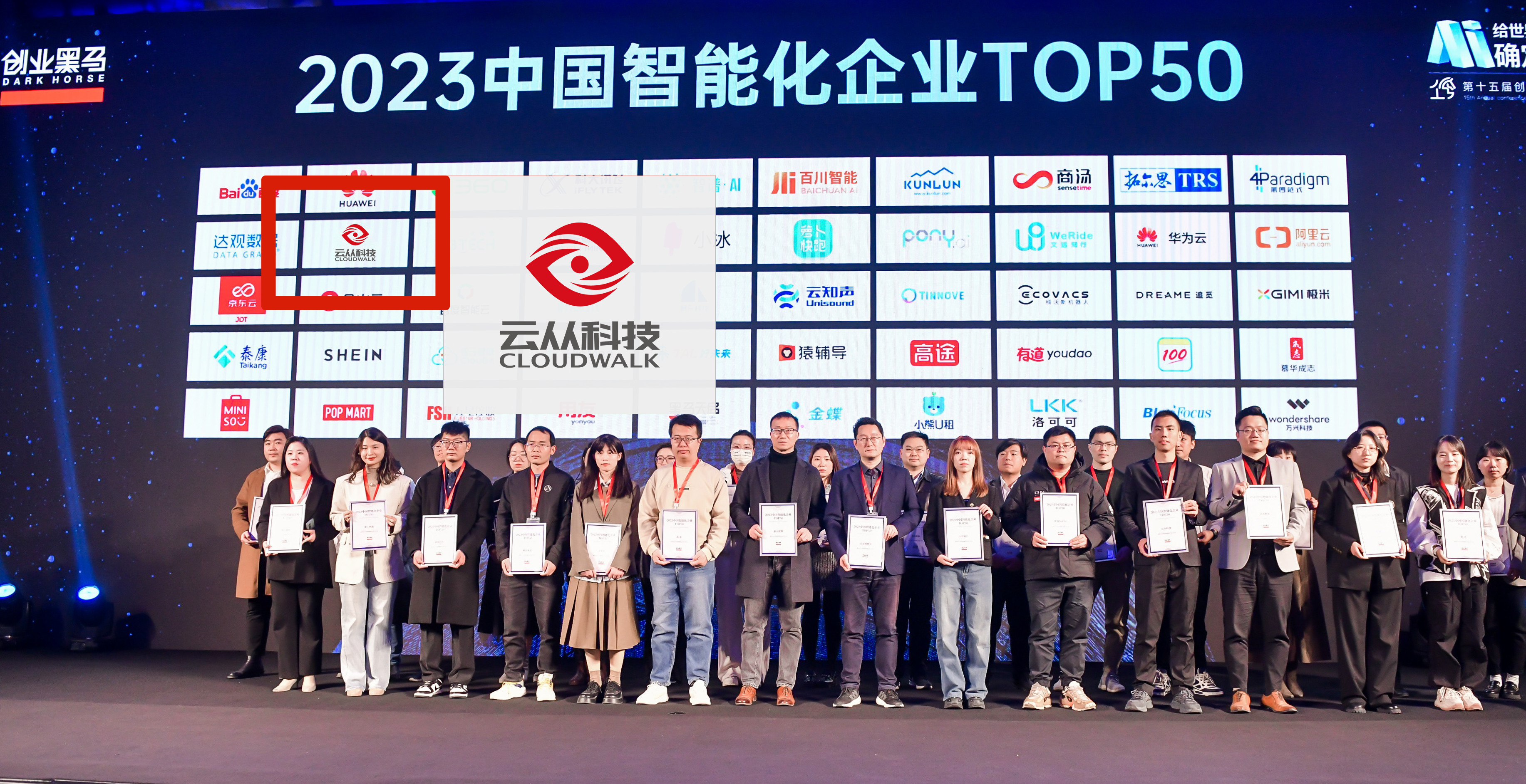 11月25-26日,由創(chuàng)業(yè)黑馬主辦的“第15屆創(chuàng)業(yè)家年會(huì)”在北京舉行。年會(huì)以“AI給世界一個(gè)確定性”為主題,探討AI與產(chǎn)業(yè)升級(jí)的未來。會(huì)上發(fā)布了《2023中國(guó)智能化企業(yè)TOP50》榜單,云從科技憑借在智能化領(lǐng)域優(yōu)異的表現(xiàn)榮登該榜單。